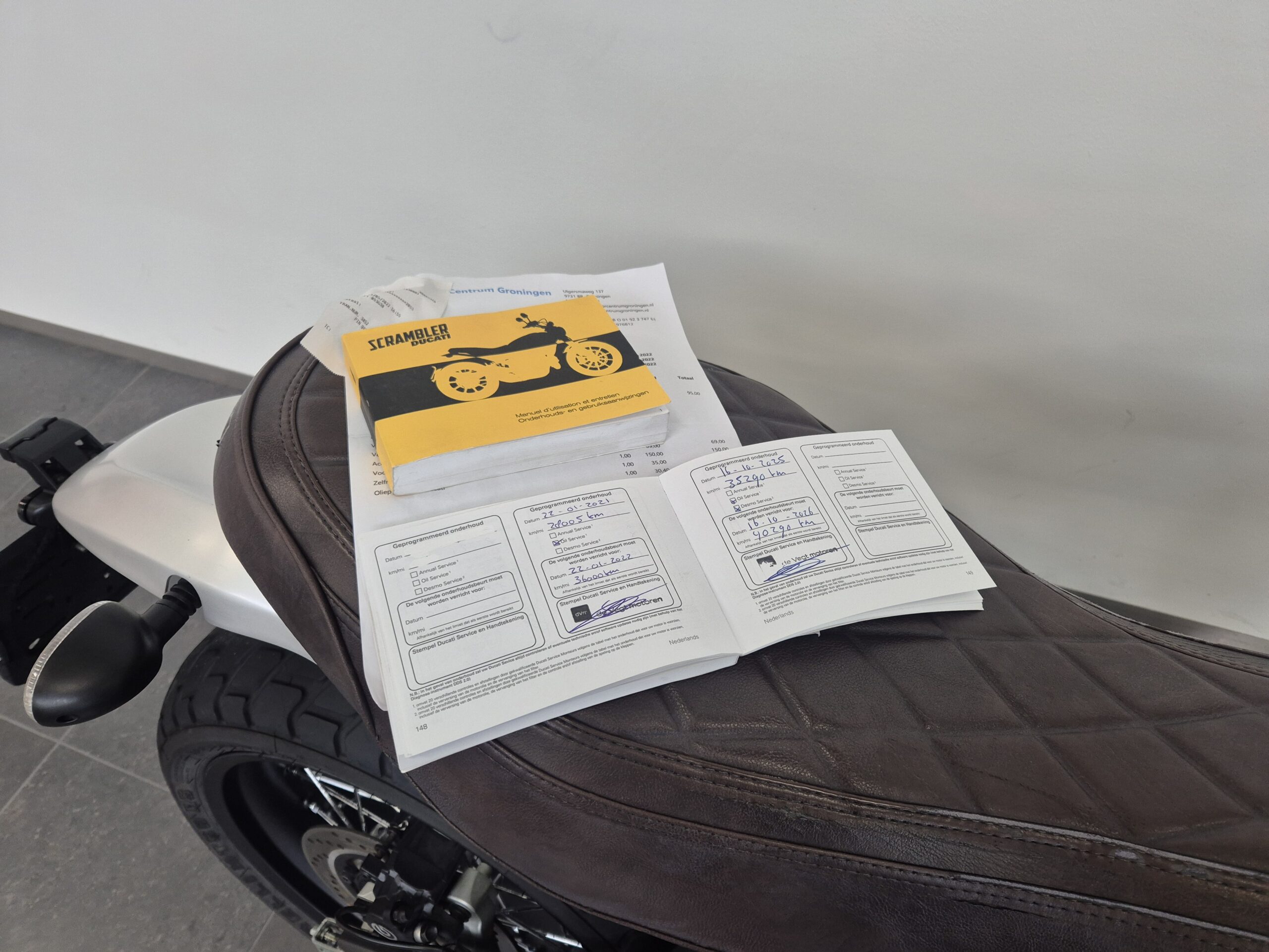 – Ducati onderhoudsboek + onderhoudsfacturen.